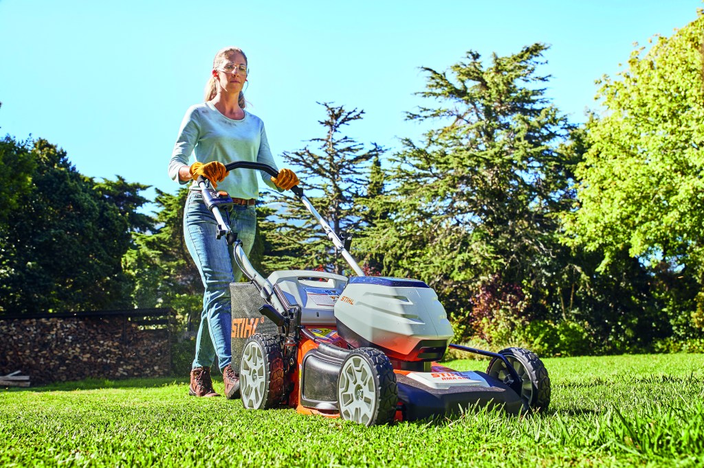 No, I am NOT an affiliate with Stihl (maybe in the future) but I really do love this mower. I just pop the battery into the charger in the kitchen before I start making coffee and by the time I’m ready to head out to the garage, I just place it in at the top and go! Just one battery charge is all it takes me to keep the height I want – 3 inches. It is easy to adjust if you want to make a visual shorter “path” but the 3″ setting keeps the lawn green, lush, and healthy.